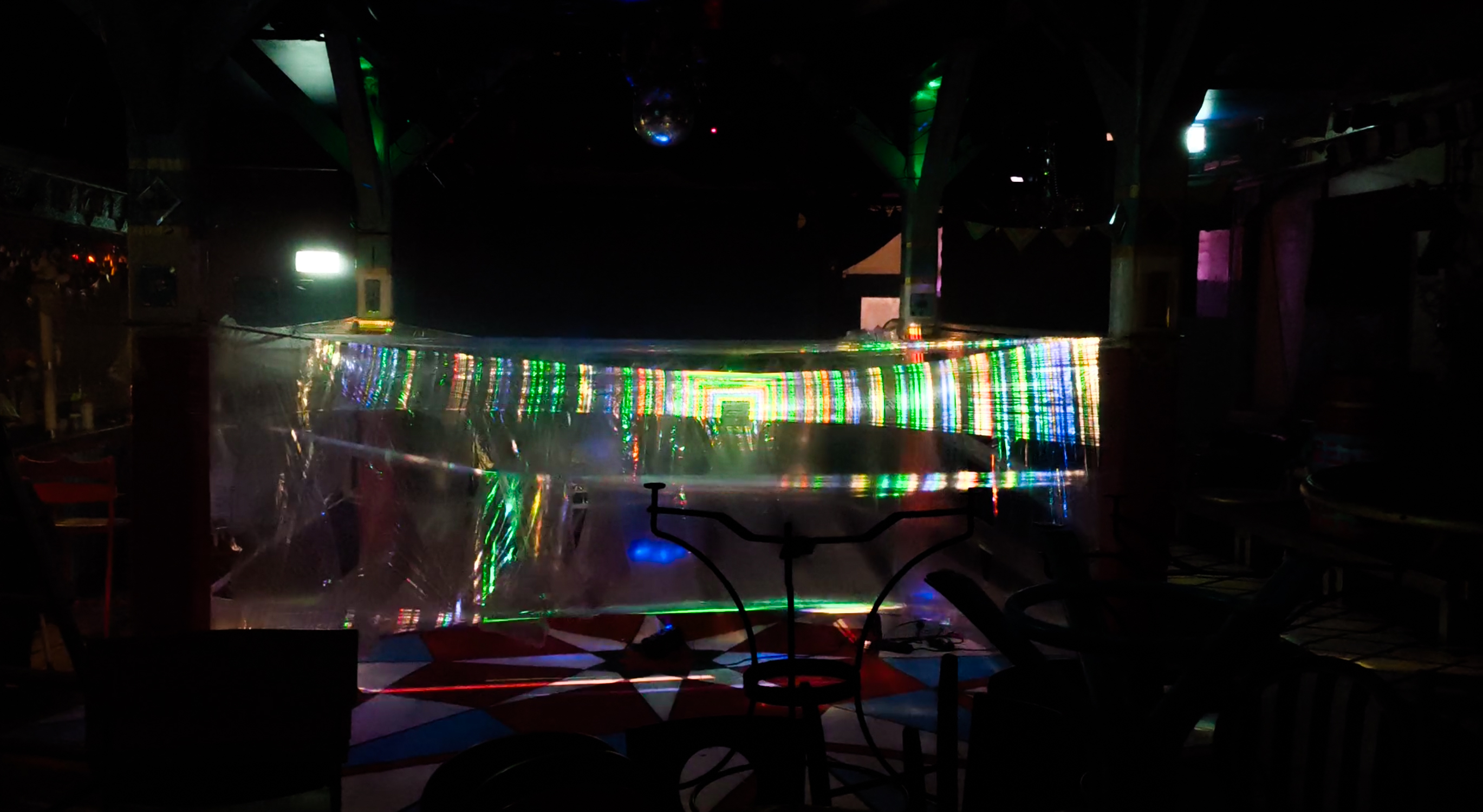 Using two projectors, I created audio-reactive boxes that gave the illusion of